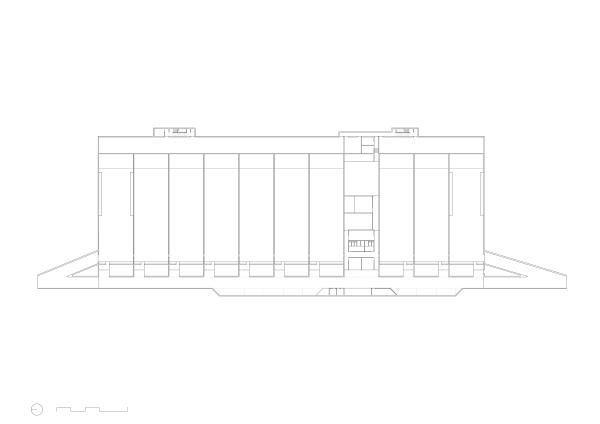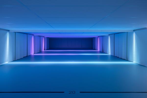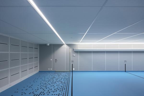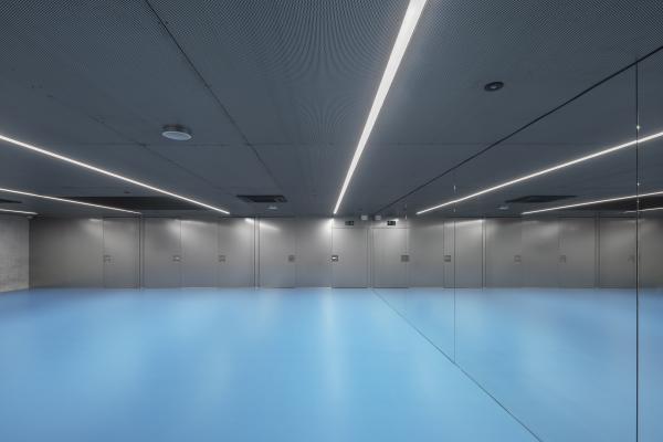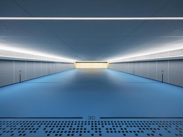 Un toit végétalisé, retour à la nature, recouvre l’ensemble, alors que seules les sorties de secours, modestes et protégées, percent le ciel. Ce projet, à l’empreinte de 7 000 m², se déploie sous terre, où l'horizontalité rencontre l’ondulation d’un paysage d’intervention.
